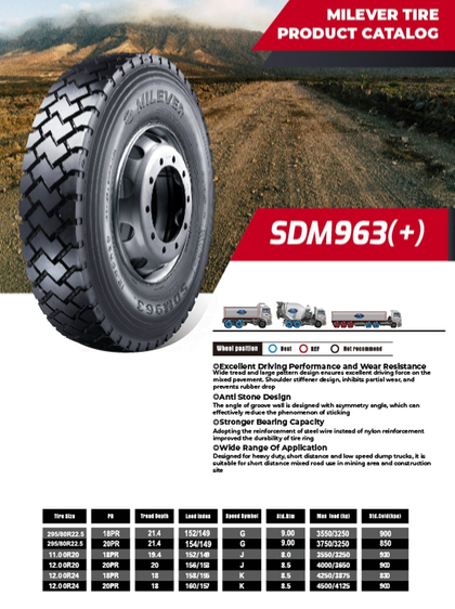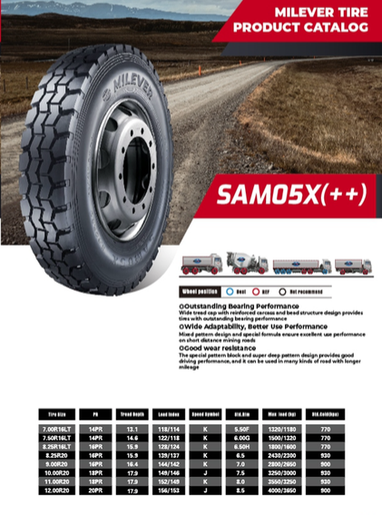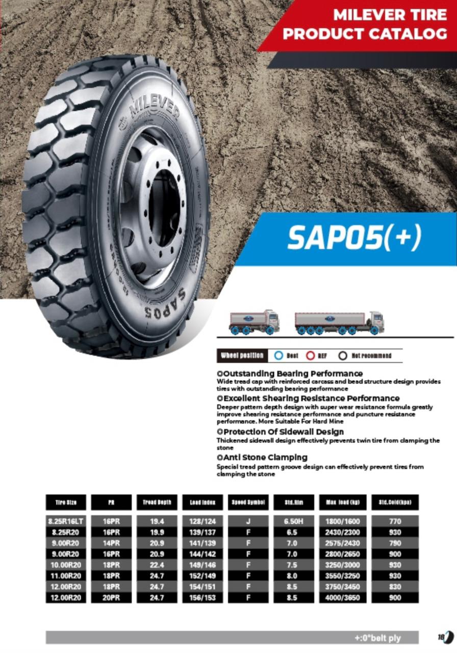 - Pola ban yang dirancang khusus untuk semua posisi roda di area penambangan